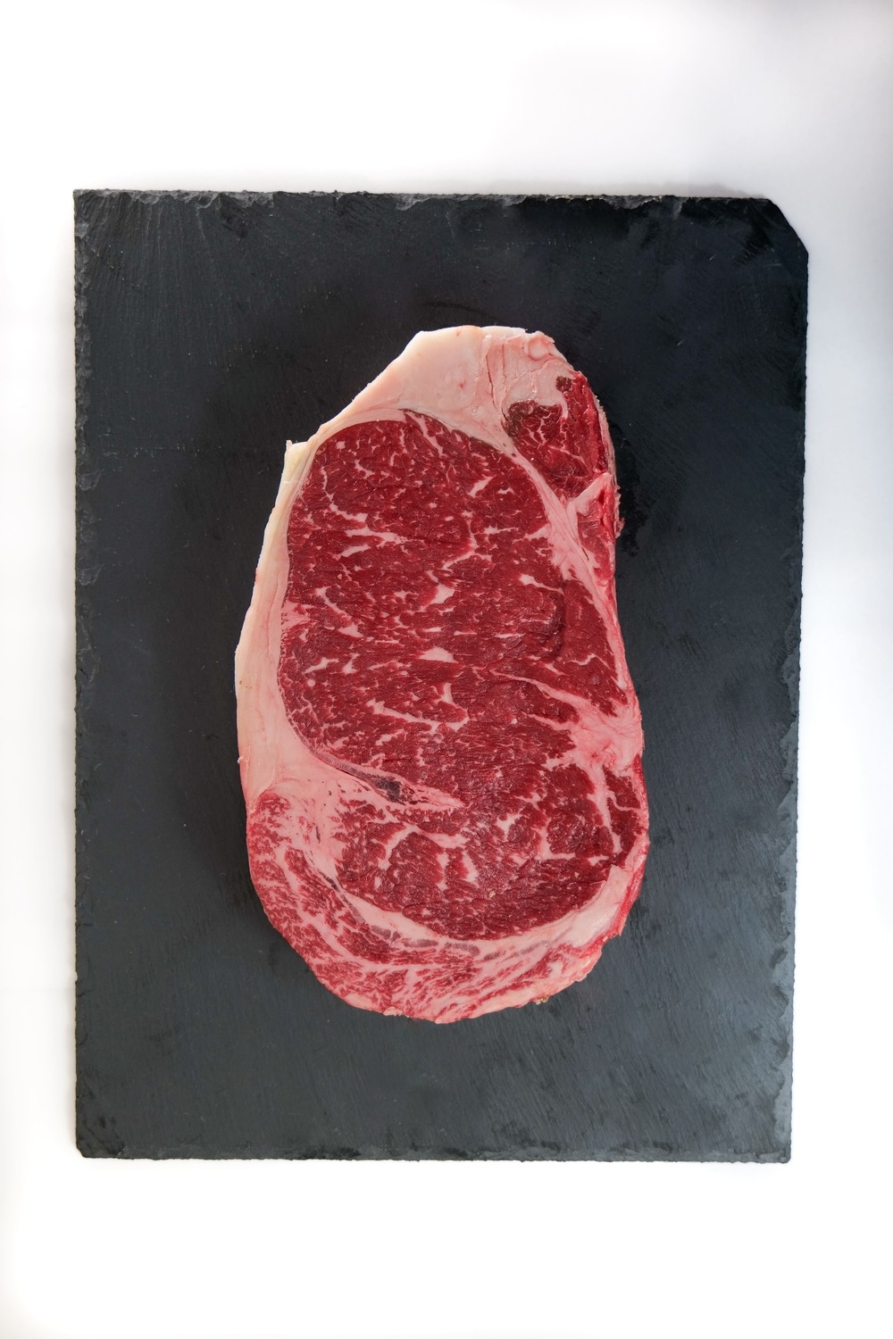 Entrecôte de race Simmental, tendre, persillée et goûteuse d’un affinage minimum de 30 jours.
